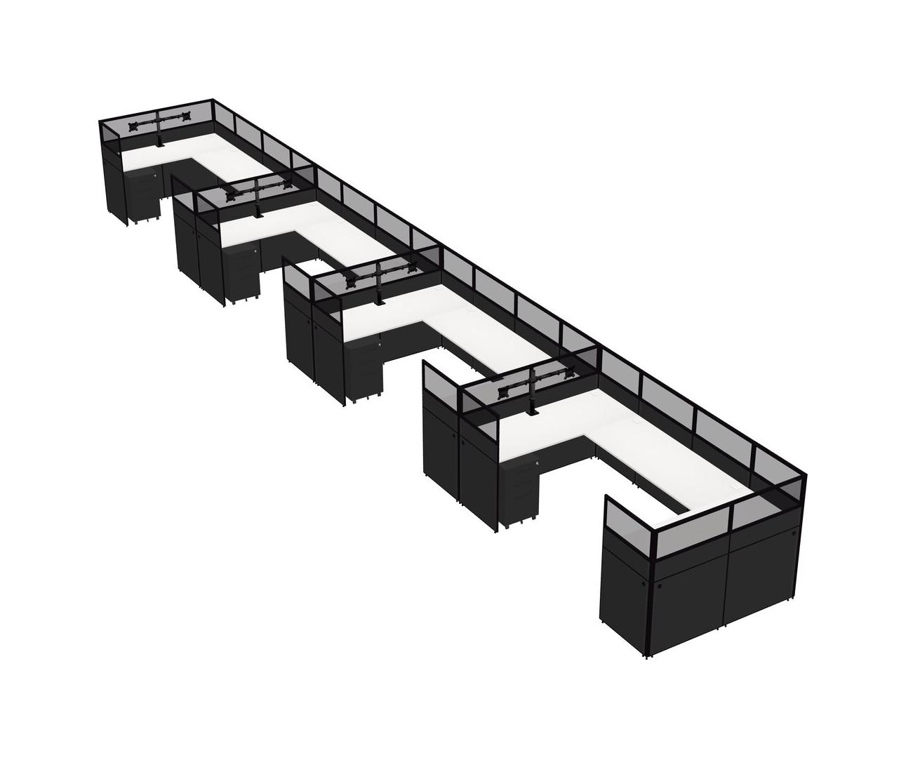 Système De Panneaux Blancs En U Pour 4 Personnes + Bras D'écran (bras Doubles) + Tiroirs Mobiles En Métal Pour 4 Utilisateur(s)
