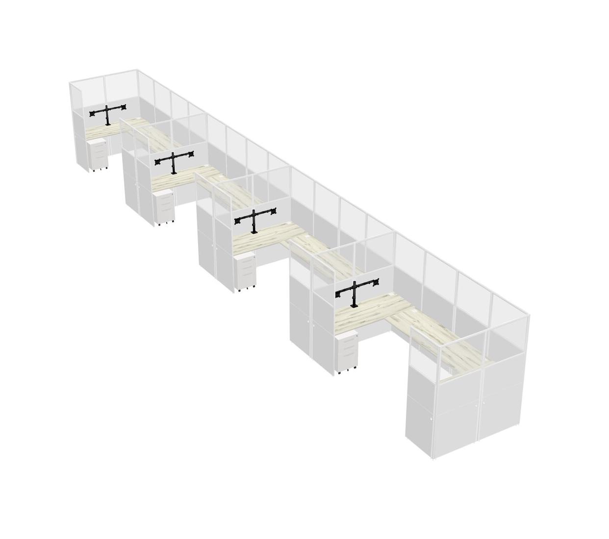 Système De Panneaux En U Heinne Holz Pour 4 Personnes + Bras D'écran (bras Doubles) + Tiroirs Mobiles En Métal Pour 4 Utilisateur(s)