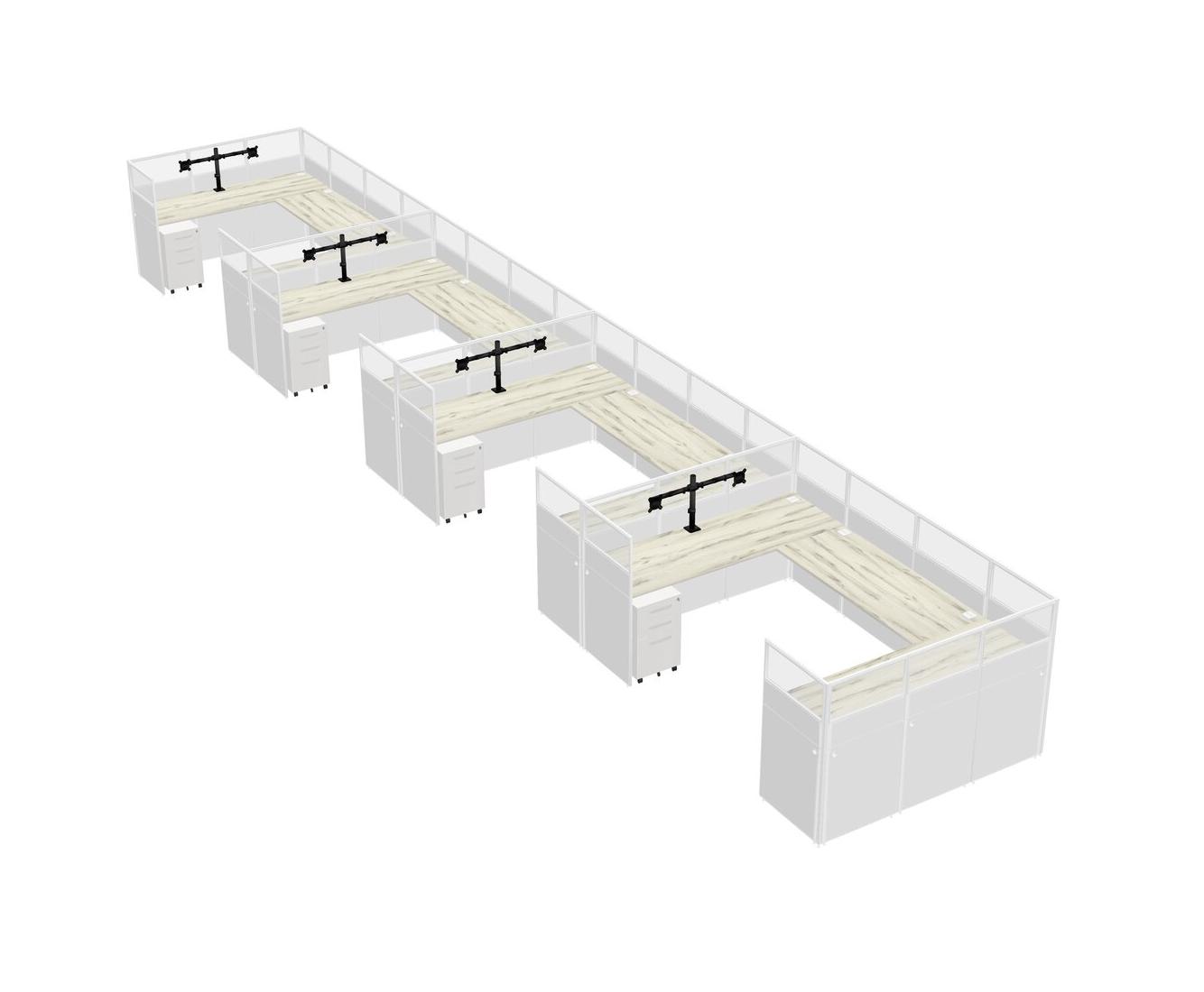 Système De Panneaux En U Heinne Holz Pour 4 Personnes + Bras D'écran (bras Doubles) + Tiroirs Mobiles En Métal Pour 4 Utilisateur(s)