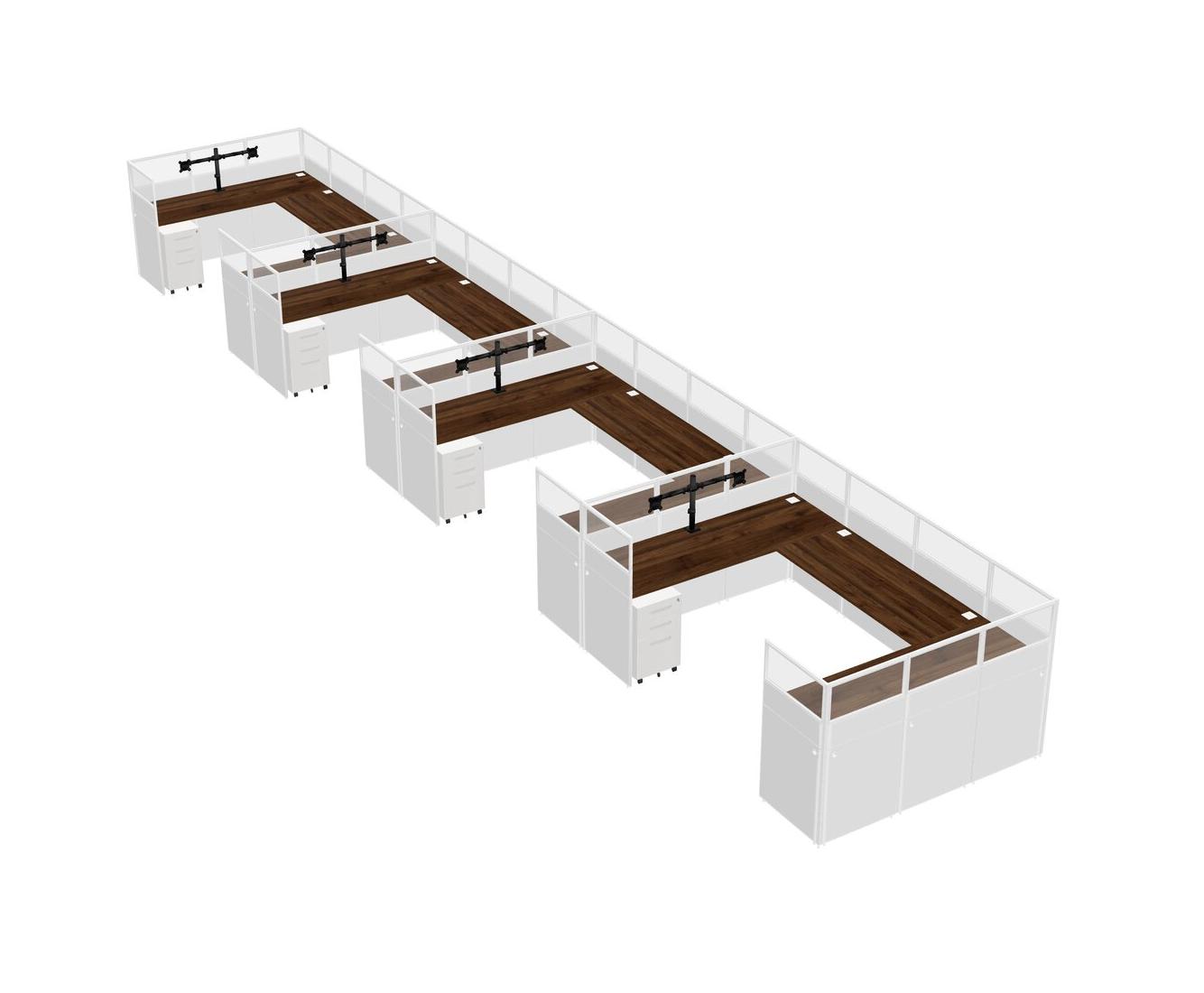 Système De Panneaux En U En Noyer Columbia Pour 4 Personnes + Bras D'écran (bras Doubles) + Tiroirs Mobiles En Métal Pour 4 Utilisateur(s)