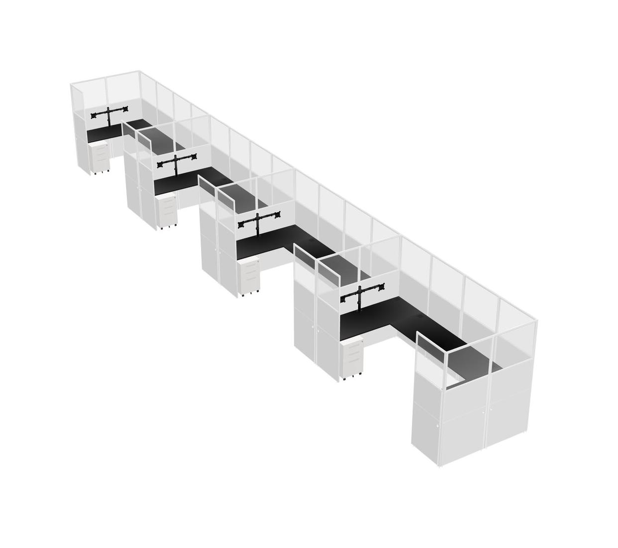 Système De Panneaux En U Noir Pour 4 Personnes + Bras D'écran (bras Doubles) + Tiroirs Mobiles En Métal Pour 4 Utilisateur(s)