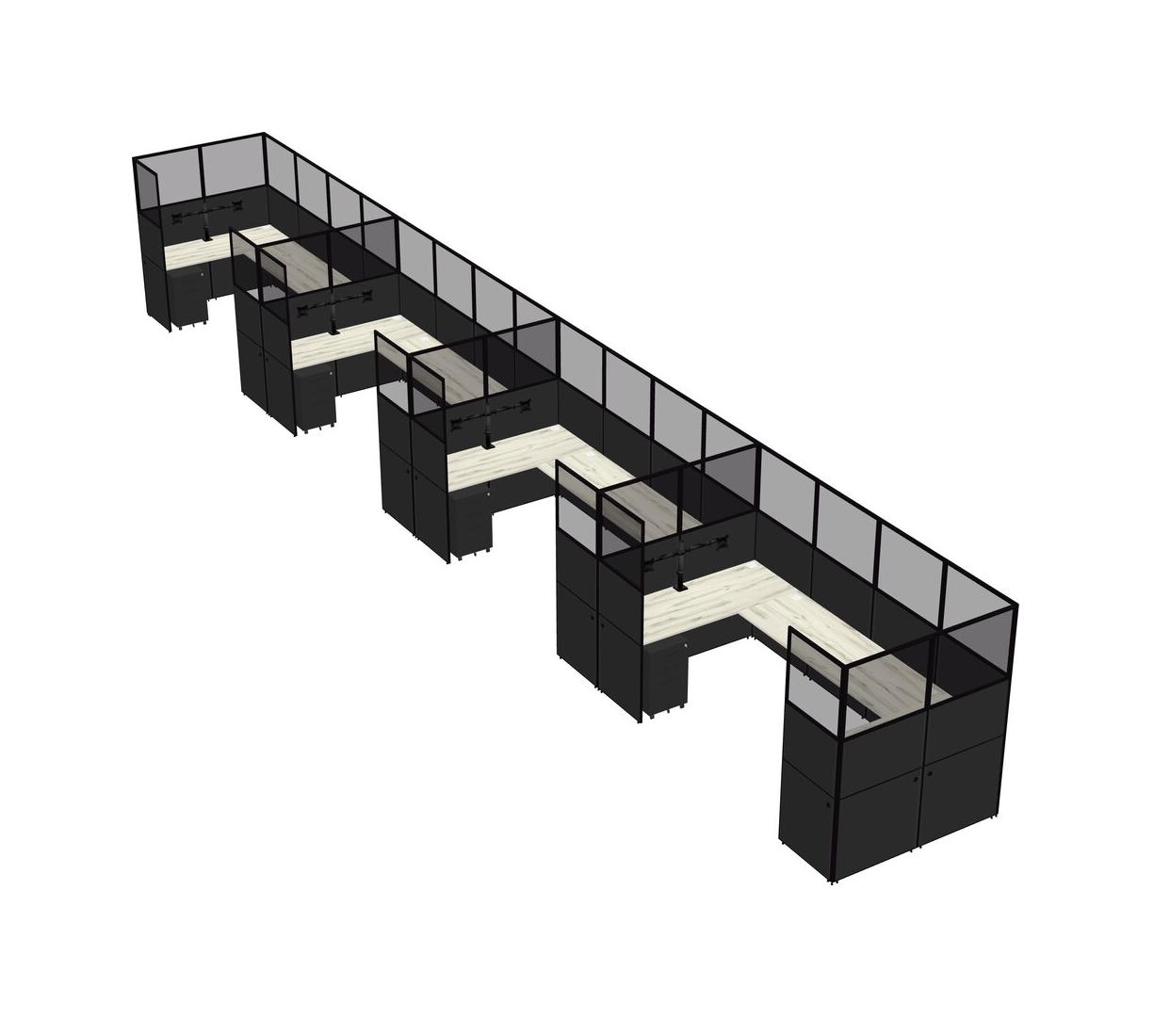 Système De Panneaux En U Heinne Holz Pour 4 Personnes + Bras D'écran (bras Doubles) + Tiroirs Mobiles En Métal Pour 4 Utilisateur(s)