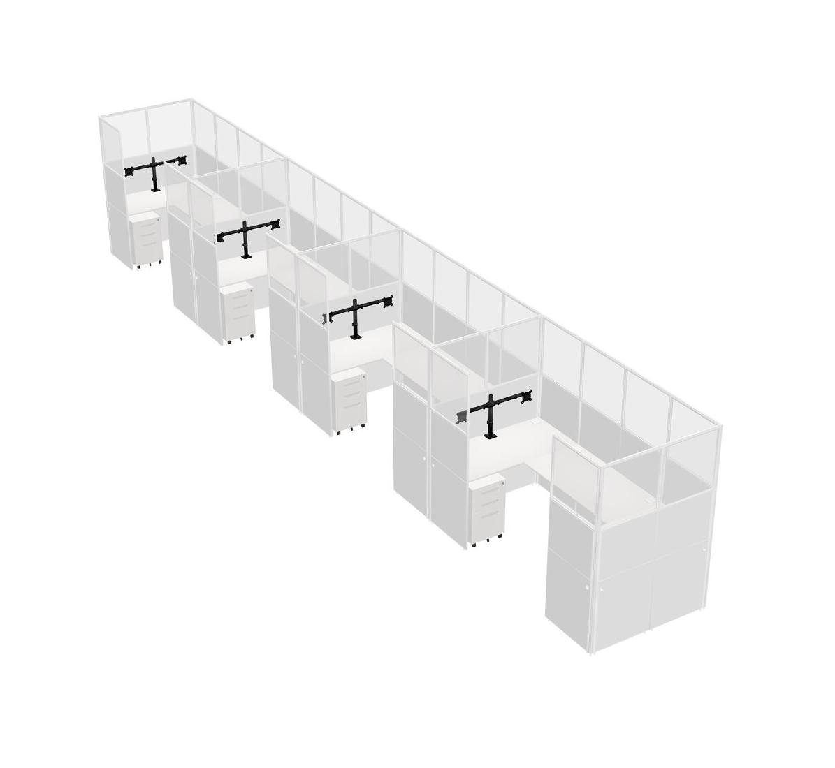 Système De Panneaux Blancs En U Pour 4 Personnes + Bras D'écran (bras Doubles) + Tiroirs Mobiles En Métal Pour 4 Utilisateur(s)