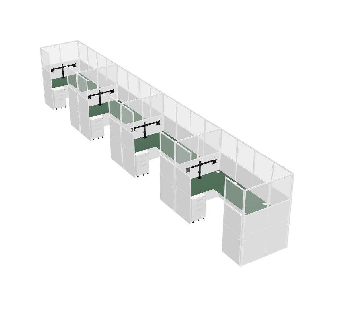 Système De Panneaux En U Vert Pour 4 Personnes + Bras De Moniteur (bras Doubles) + Tiroirs Mobiles En Métal Pour 4 Utilisateur(s)