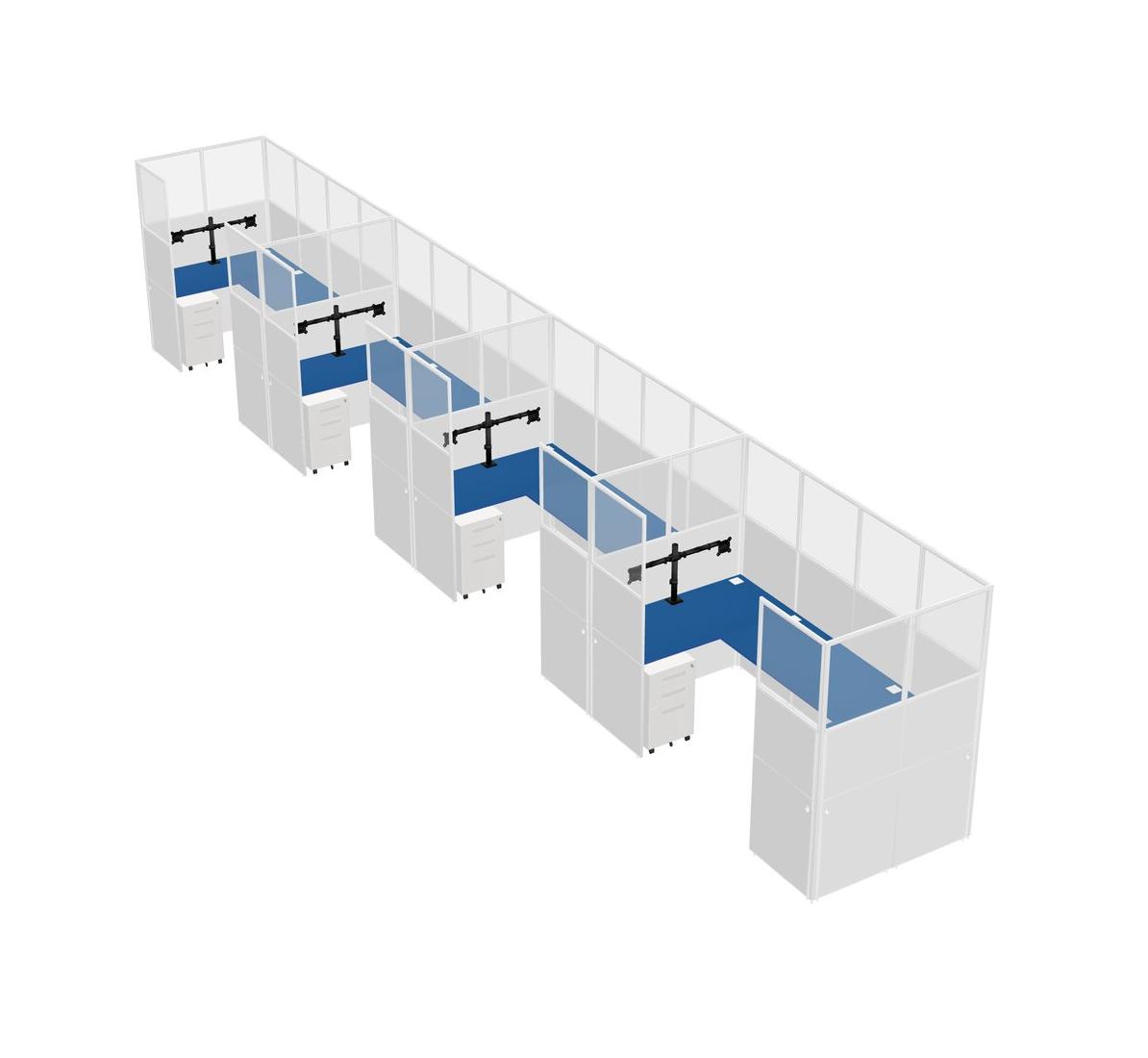 Système De Panneaux En U Prism Blue Pour 4 Personnes + Bras D'écran (bras Doubles) + Tiroirs Mobiles En Métal Pour 4 Utilisateur(s)
