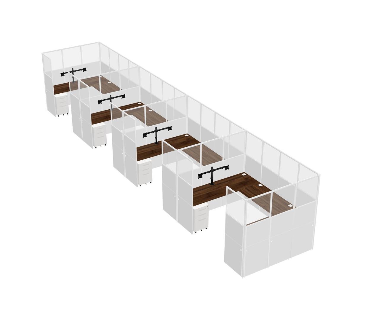Système De Panneaux En U En Noyer Columbia Pour 4 Personnes + Bras D'écran (bras Doubles) + Tiroirs Mobiles En Métal Pour 4 Utilisateur(s)