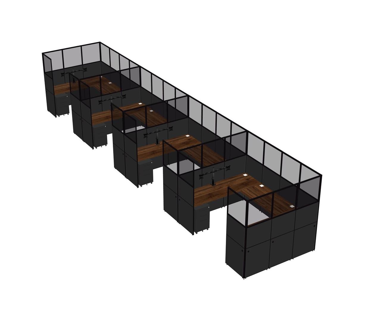 Système De Panneaux En U En Noyer Columbia Pour 4 Personnes + Bras D'écran (bras Doubles) + Tiroirs Mobiles En Métal Pour 4 Utilisateur(s)