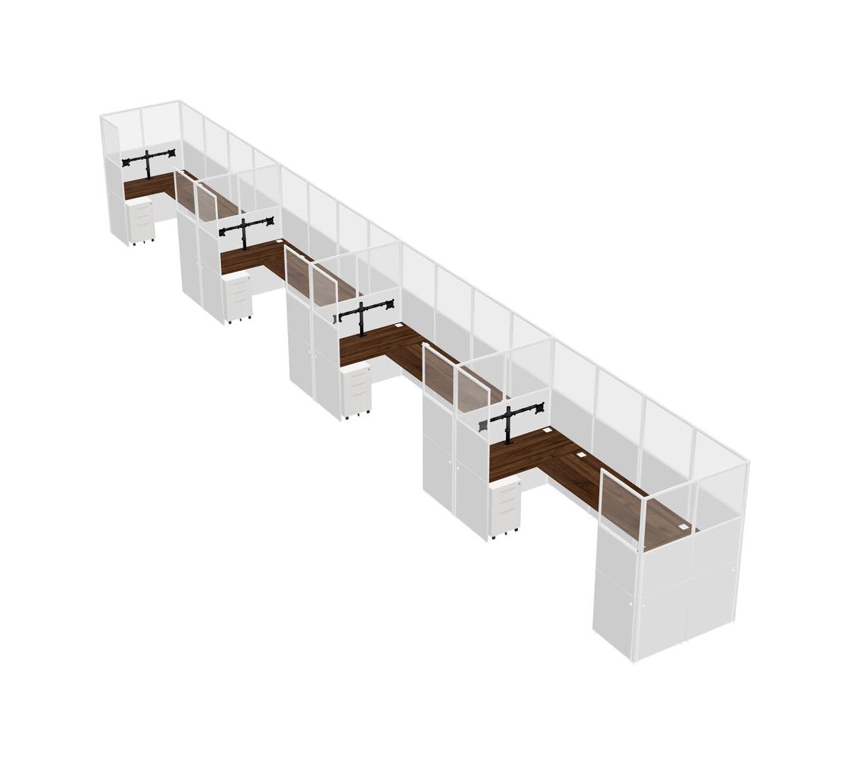 Système De Panneaux En U En Noyer Columbia Pour 4 Personnes + Bras D'écran (bras Doubles) + Tiroirs Mobiles En Métal Pour 4 Utilisateur(s)