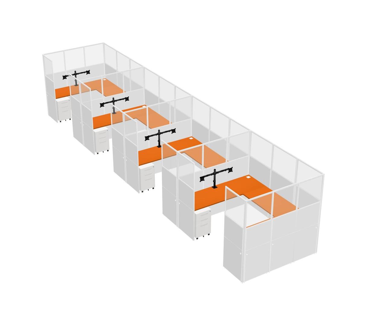Système De Panneaux En U Orange Pour 4 Personnes + Bras De Moniteur (bras Doubles) + Tiroirs Mobiles En Métal Pour 4 Utilisateur(s)