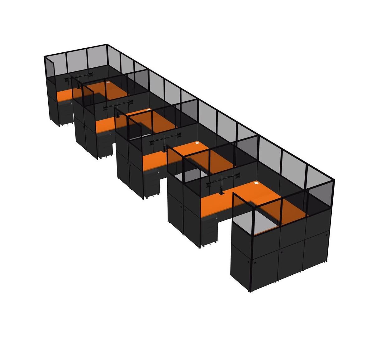 Système De Panneaux En U Orange Pour 4 Personnes + Bras De Moniteur (bras Doubles) + Tiroirs Mobiles En Métal Pour 4 Utilisateur(s)
