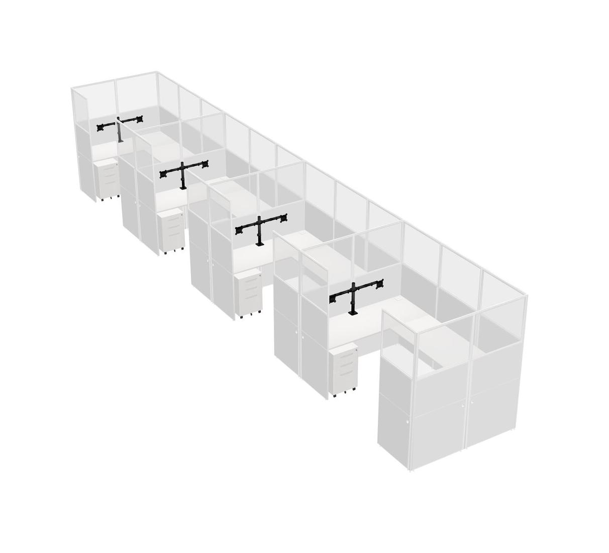 Système De Panneaux Blancs En U Pour 4 Personnes + Bras D'écran (bras Doubles) + Tiroirs Mobiles En Métal Pour 4 Utilisateur(s)