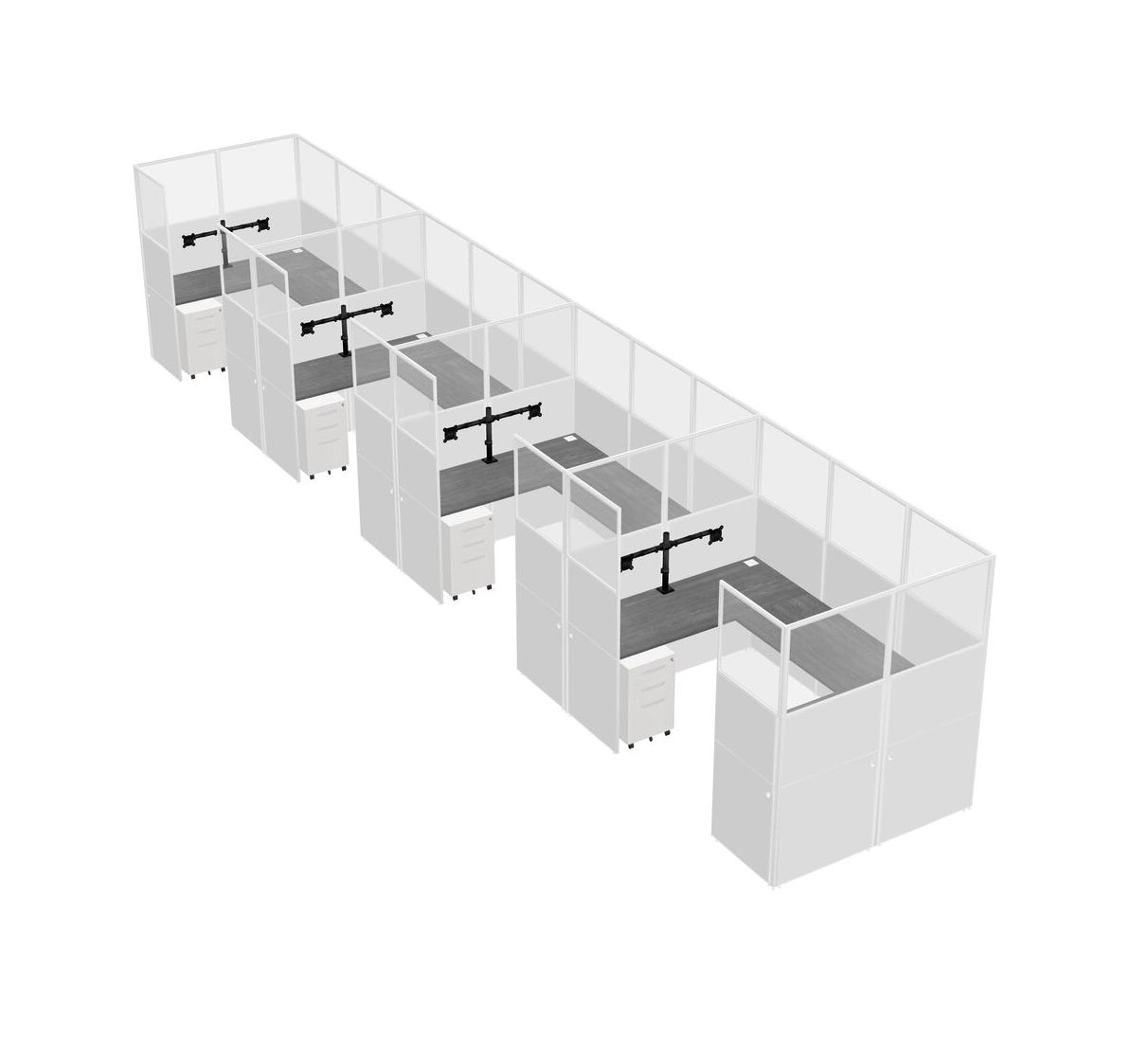 Système De Panneaux En U Gris Pour 4 Personnes + Bras D'écran (bras Doubles) + Tiroirs Mobiles En Métal Pour 4 Utilisateur(s)