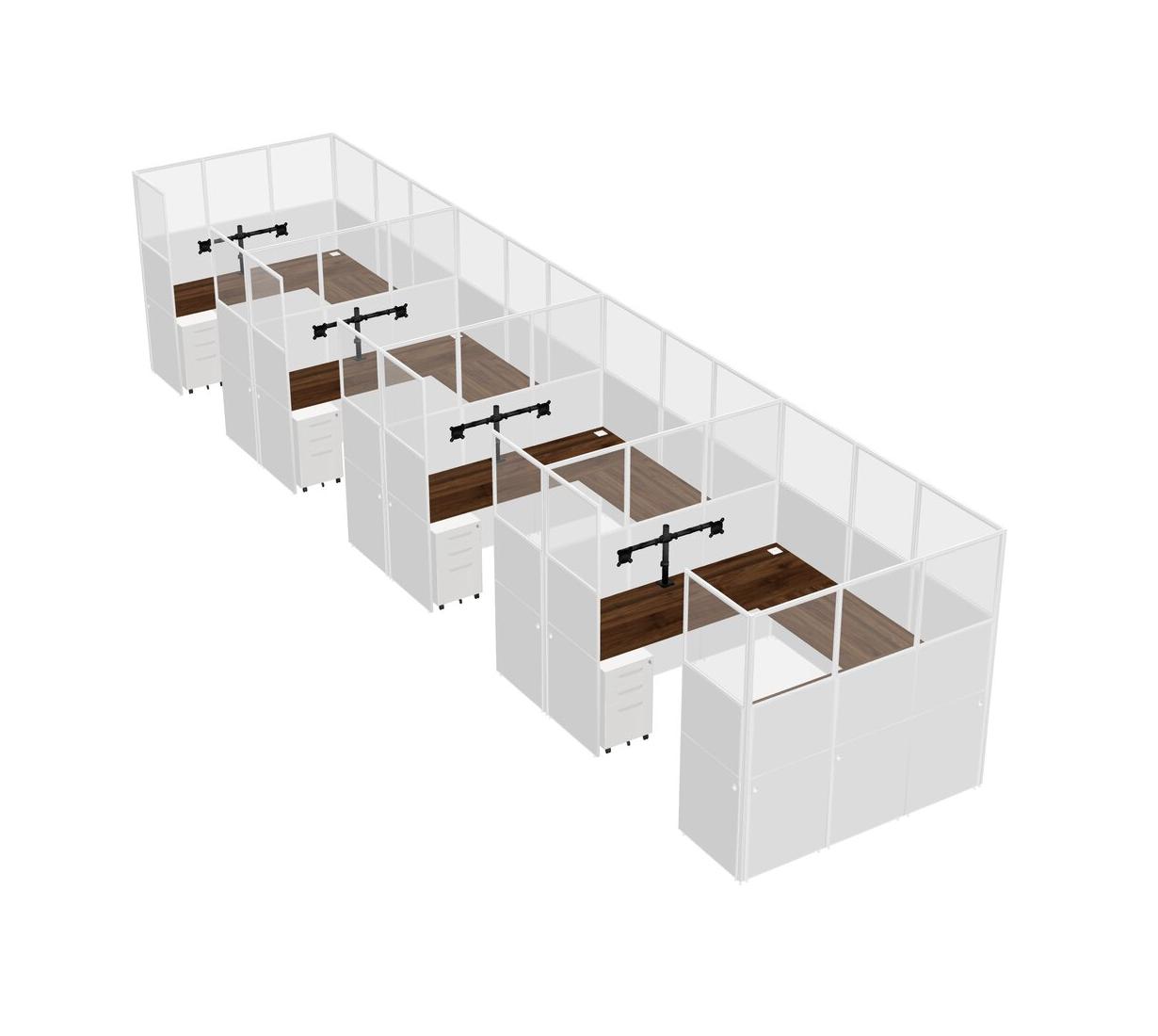 Système De Panneaux En U En Noyer Columbia Pour 4 Personnes + Bras D'écran (bras Doubles) + Tiroirs Mobiles En Métal Pour 4 Utilisateur(s)