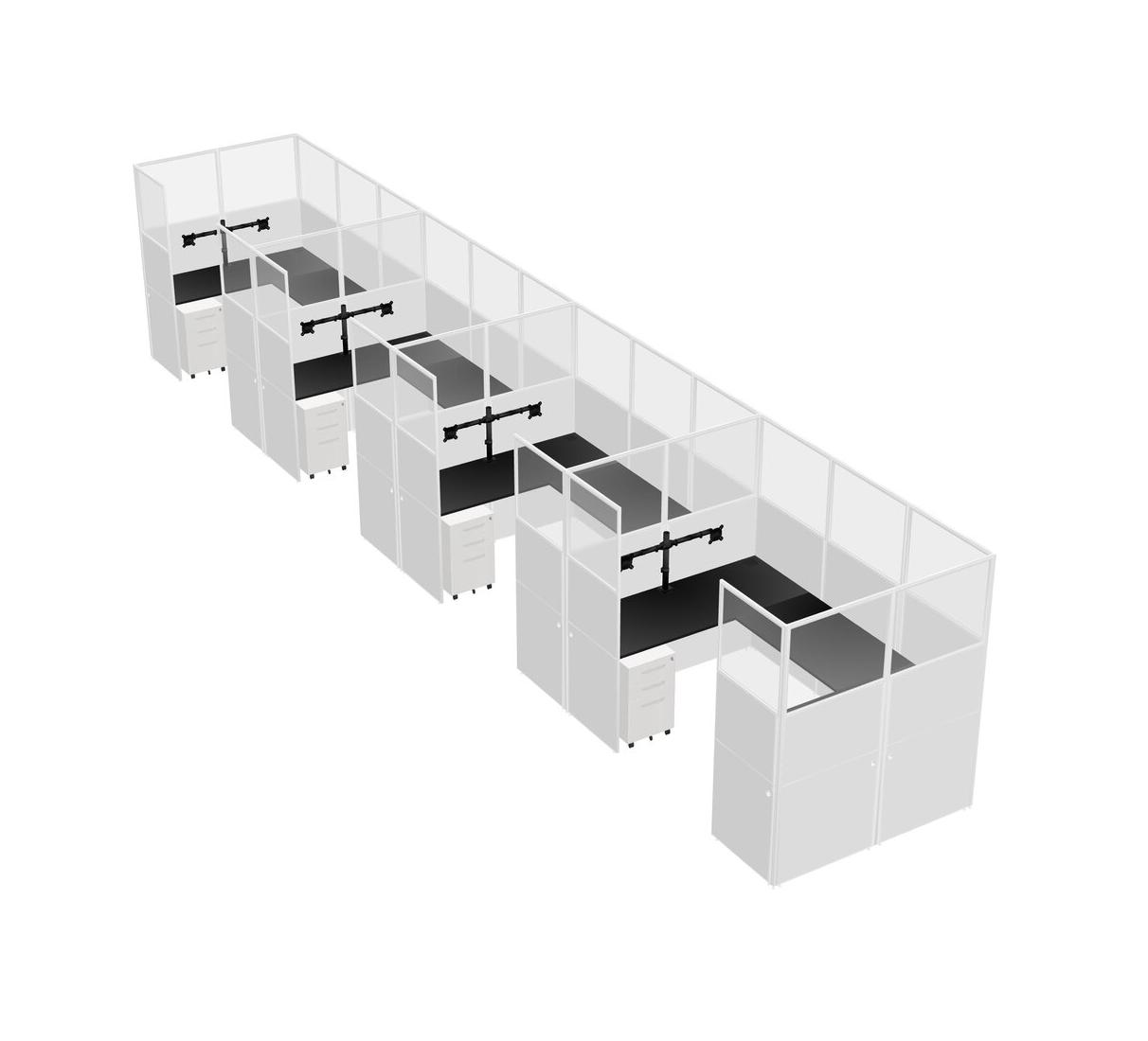 Système De Panneaux En U Noir Pour 4 Personnes + Bras D'écran (bras Doubles) + Tiroirs Mobiles En Métal Pour 4 Utilisateur(s)