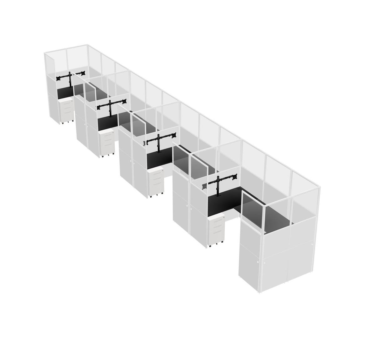Système De Panneaux En U Noir Pour 4 Personnes + Bras D'écran (bras Doubles) + Tiroirs Mobiles En Métal Pour 4 Utilisateur(s)