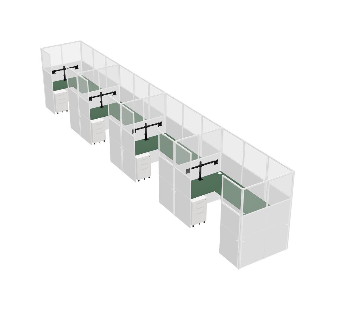 Système De Panneaux En U Vert Pour 4 Personnes + Bras De Moniteur (bras Doubles) + Tiroirs Mobiles En Métal Pour 4 Utilisateur(s)