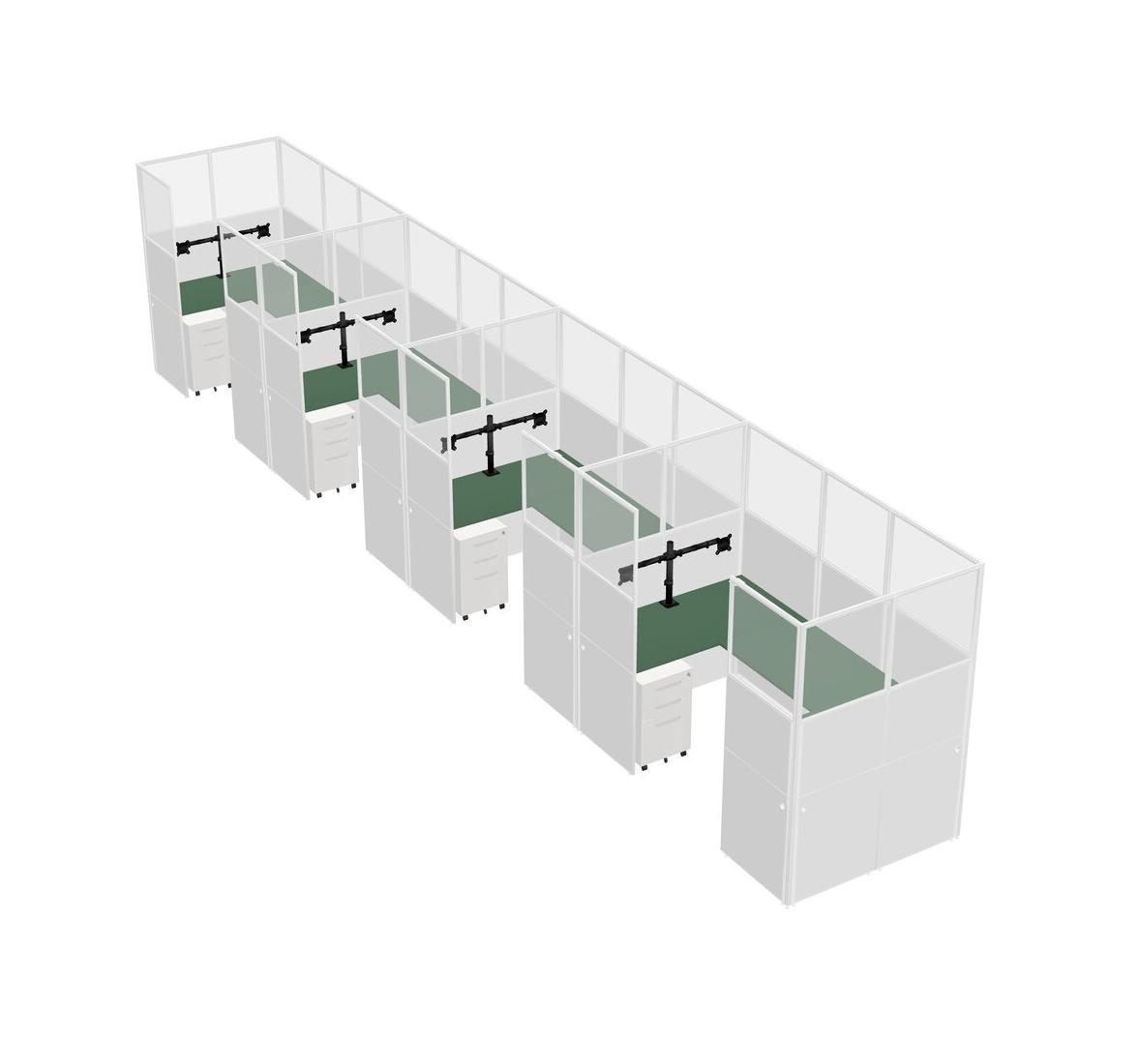Système De Panneaux En U Vert Pour 4 Personnes + Bras De Moniteur (bras Doubles) + Tiroirs Mobiles En Métal Pour 4 Utilisateur(s)