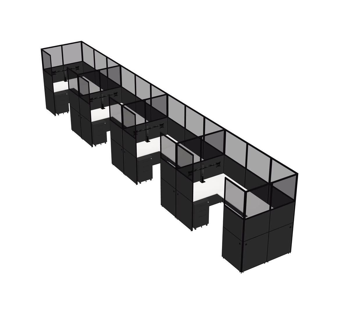 Système De Panneaux Blancs En U Pour 4 Personnes + Bras D'écran (bras Doubles) + Tiroirs Mobiles En Métal Pour 4 Utilisateur(s)
