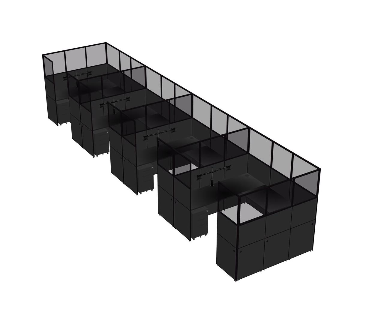 Système De Panneaux En U Noir Pour 4 Personnes + Bras D'écran (bras Doubles) + Tiroirs Mobiles En Métal Pour 4 Utilisateur(s)
