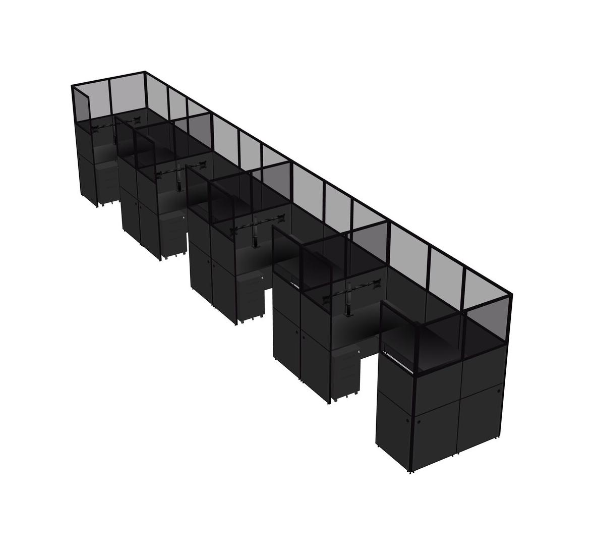 Système De Panneaux En U Noir Pour 4 Personnes + Bras D'écran (bras Doubles) + Tiroirs Mobiles En Métal Pour 4 Utilisateur(s)