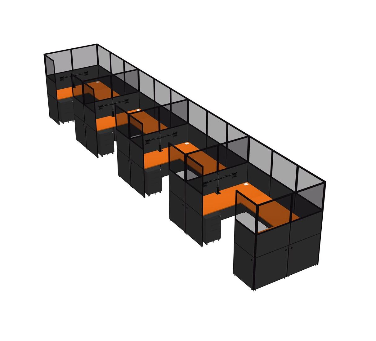 Système De Panneaux En U Orange Pour 4 Personnes + Bras De Moniteur (bras Doubles) + Tiroirs Mobiles En Métal Pour 4 Utilisateur(s)