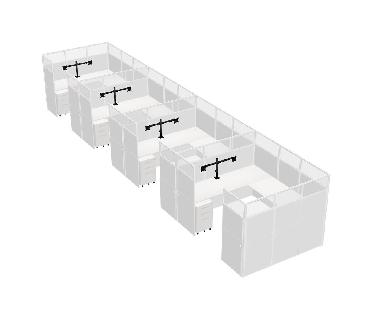 Système De Panneaux Blancs En U Pour 4 Personnes + Bras D'écran (bras Doubles) + Tiroirs Mobiles En Métal Pour 4 Utilisateur(s)