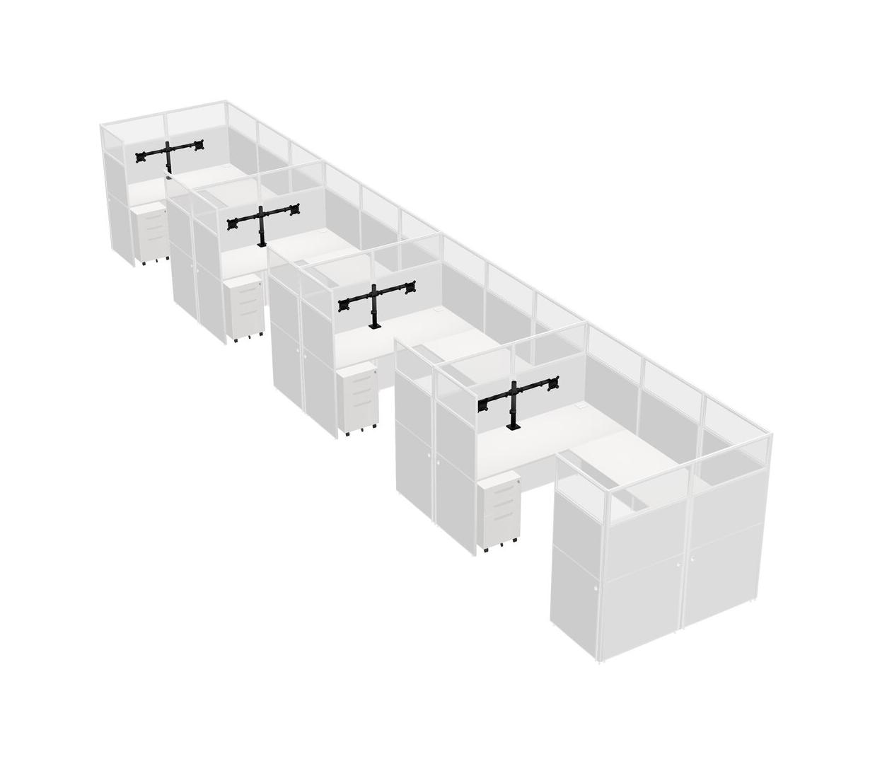 Système De Panneaux Blancs En U Pour 4 Personnes + Bras D'écran (bras Doubles) + Tiroirs Mobiles En Métal Pour 4 Utilisateur(s)