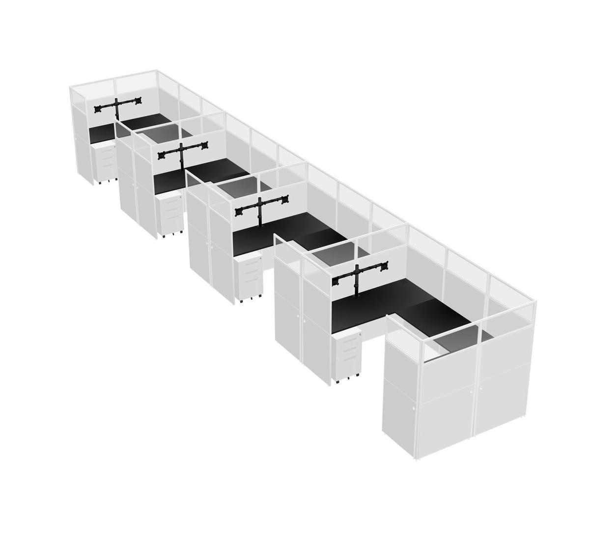 Système De Panneaux En U Noir Pour 4 Personnes + Bras D'écran (bras Doubles) + Tiroirs Mobiles En Métal Pour 4 Utilisateur(s)