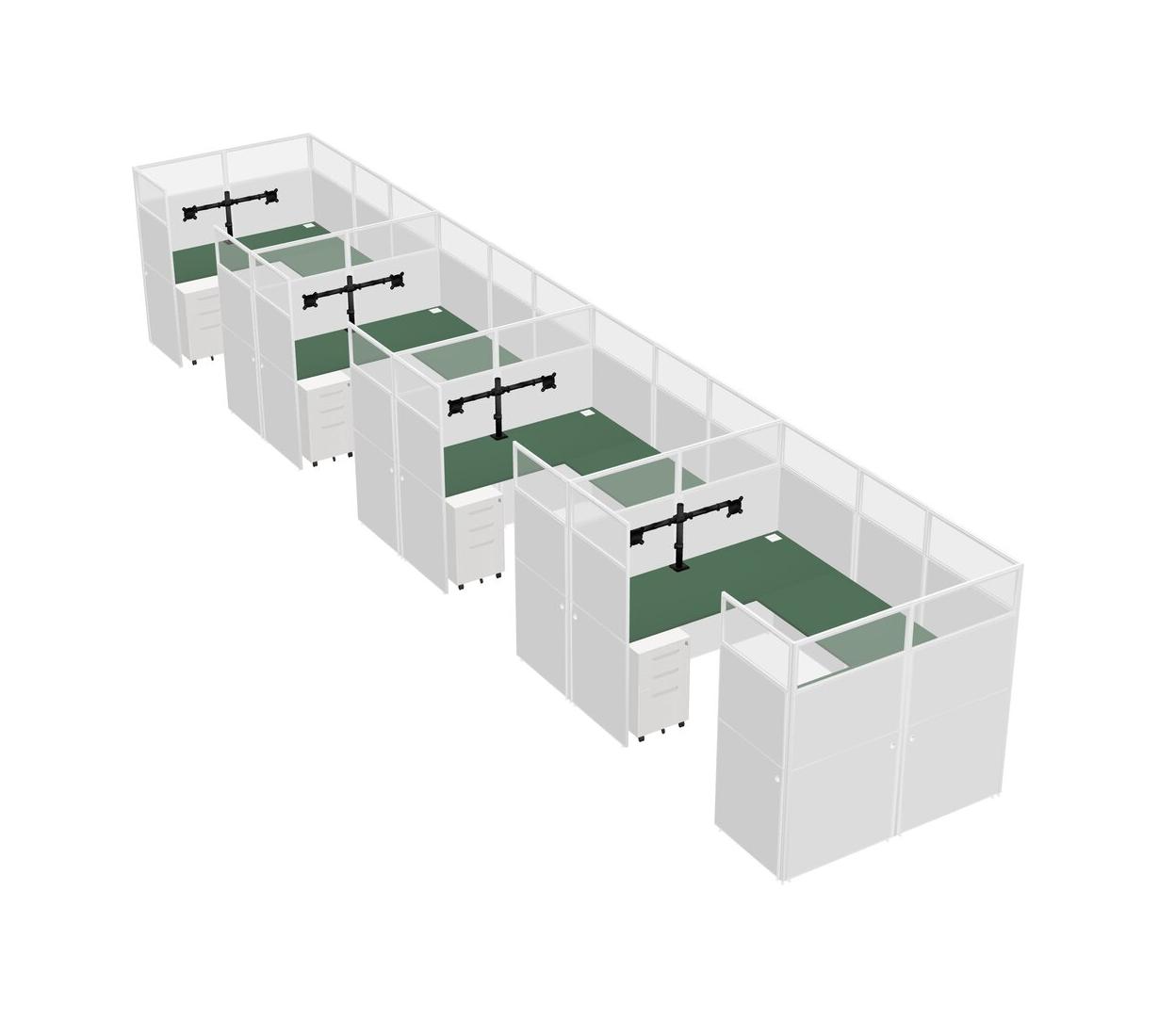 Système De Panneaux En U Vert Pour 4 Personnes + Bras De Moniteur (bras Doubles) + Tiroirs Mobiles En Métal Pour 4 Utilisateur(s)