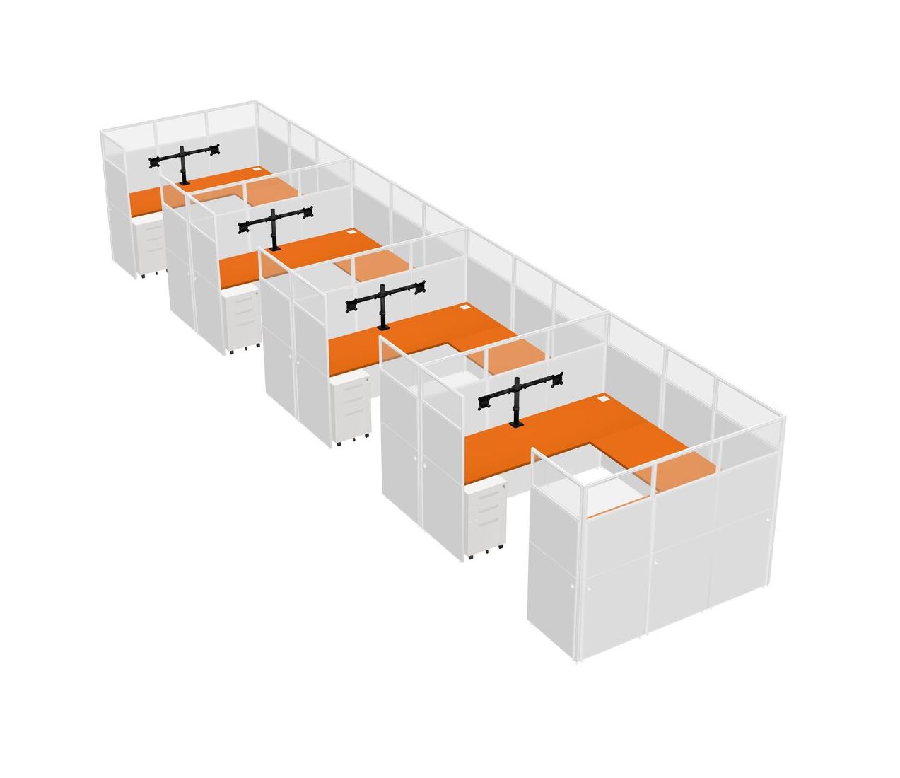 Système De Panneaux En U Orange Pour 4 Personnes + Bras De Moniteur (bras Doubles) + Tiroirs Mobiles En Métal Pour 4 Utilisateur(s)