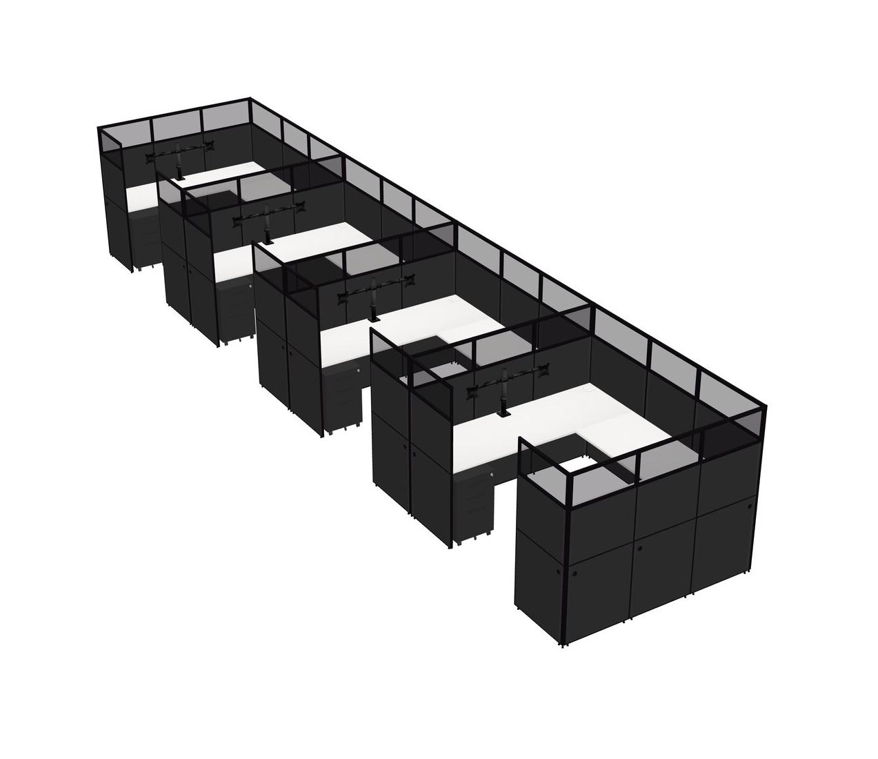 Système De Panneaux Blancs En U Pour 4 Personnes + Bras D'écran (bras Doubles) + Tiroirs Mobiles En Métal Pour 4 Utilisateur(s)