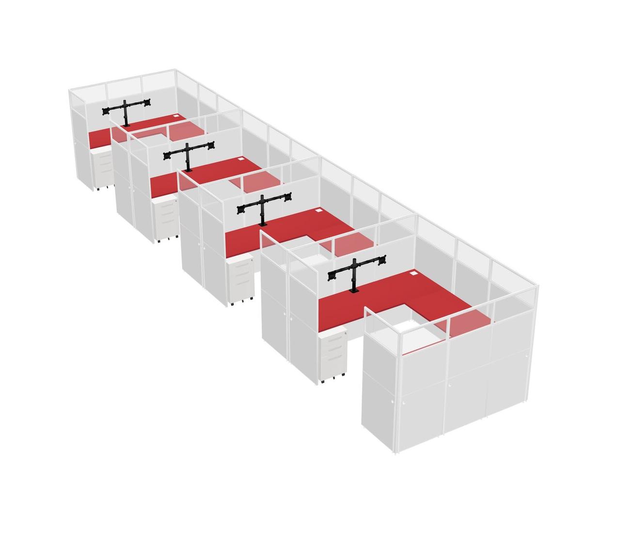 Système De Panneaux En U Prism Red Pour 4 Personnes + Bras D'écran (bras Doubles) + Tiroirs Mobiles En Métal Pour 4 Utilisateur(s)