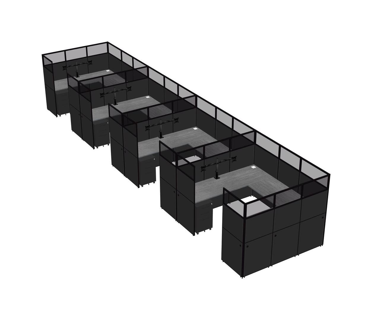 Système De Panneaux En U Gris Pour 4 Personnes + Bras D'écran (bras Doubles) + Tiroirs Mobiles En Métal Pour 4 Utilisateur(s)