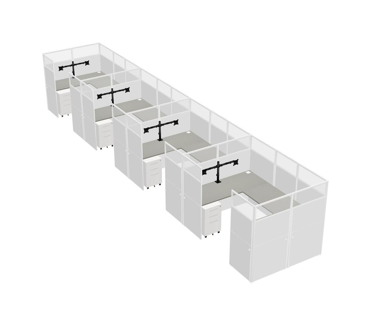Système De Panneaux En U Grey Shadows Pour 4 Personnes + Bras D'écran (bras Doubles) + Tiroirs Mobiles En Métal Pour 4 Utilisateur(s)