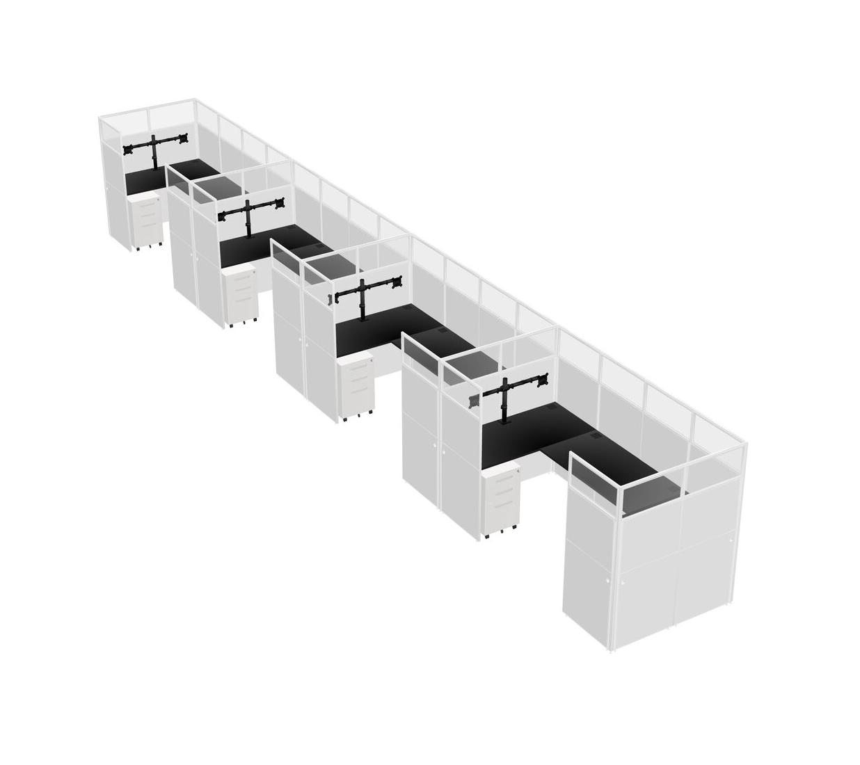 Système De Panneaux En U Noir Pour 4 Personnes + Bras D'écran (bras Doubles) + Tiroirs Mobiles En Métal Pour 4 Utilisateur(s)