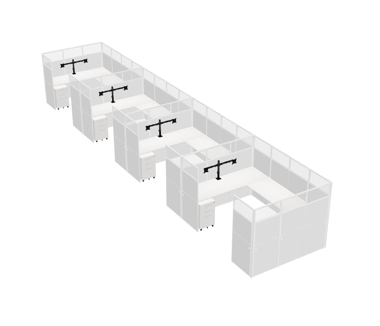 Système De Panneaux Blancs En U Pour 4 Personnes + Bras D'écran (bras Doubles) + Tiroirs Mobiles En Métal Pour 4 Utilisateur(s)