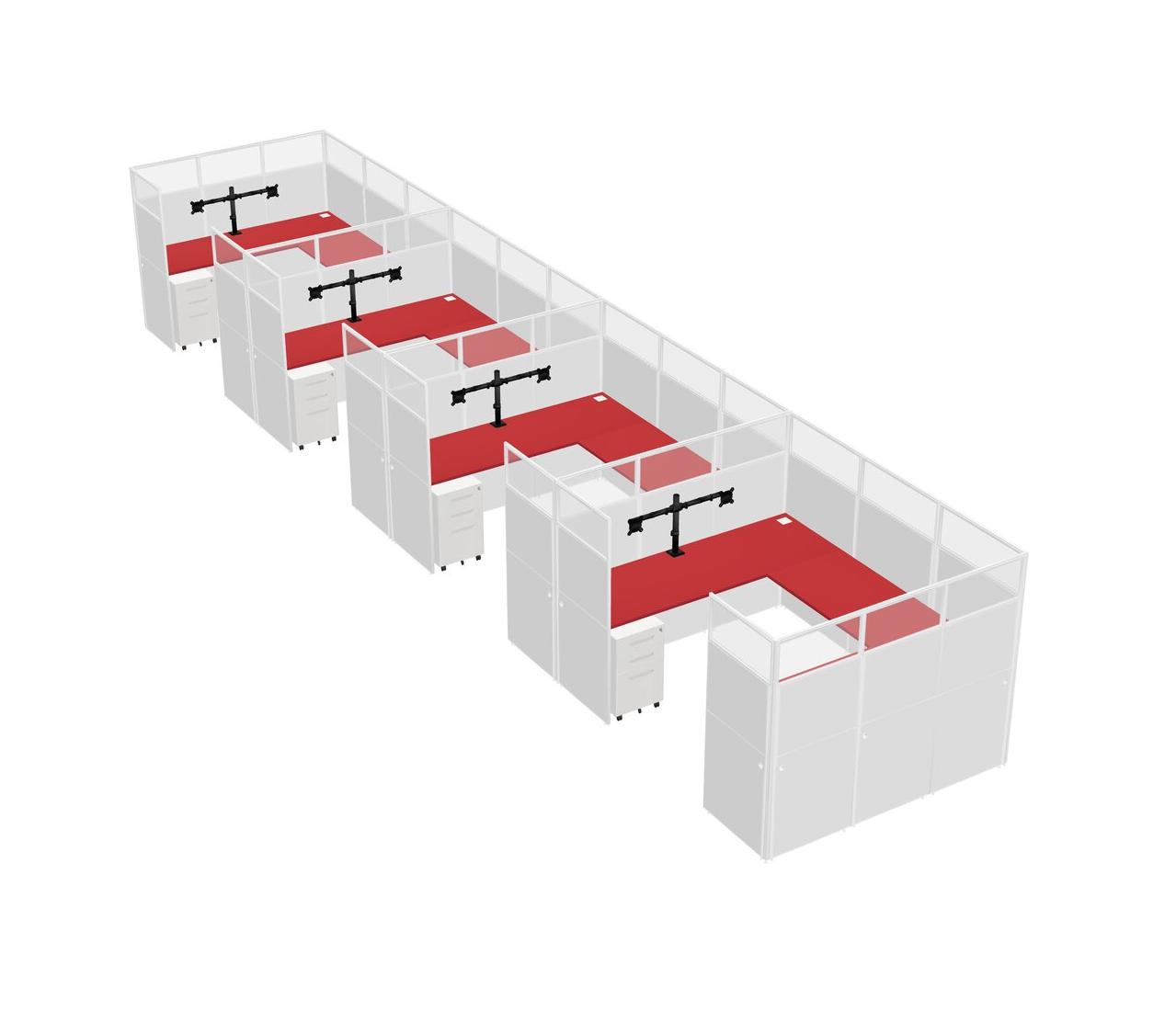 Système De Panneaux En U Prism Red Pour 4 Personnes + Bras D'écran (bras Doubles) + Tiroirs Mobiles En Métal Pour 4 Utilisateur(s)