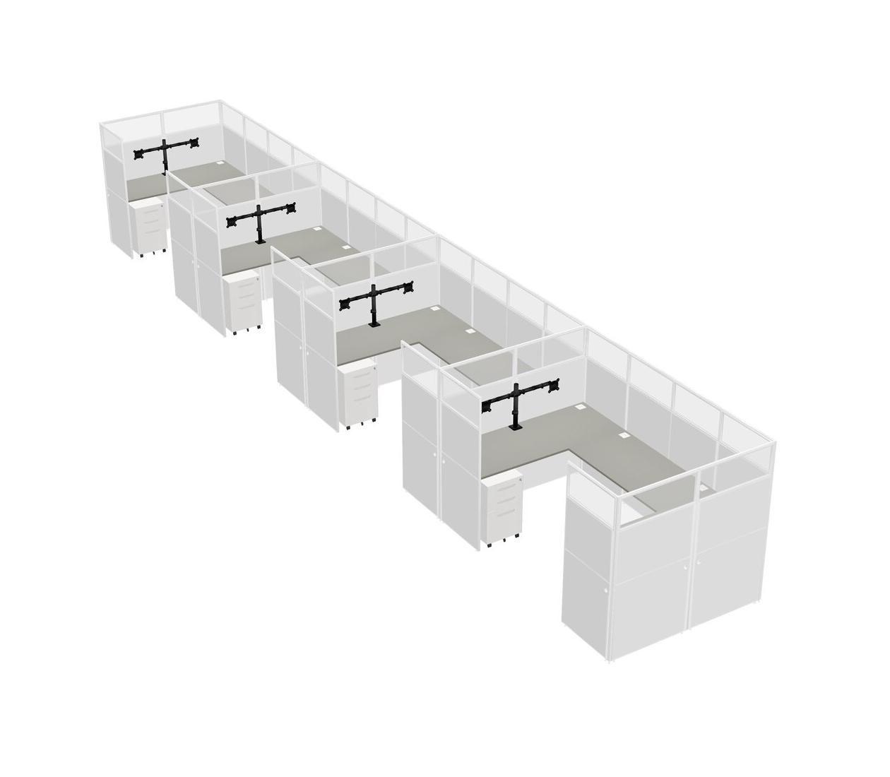 Système De Panneaux En U Grey Shadows Pour 4 Personnes + Bras D'écran (bras Doubles) + Tiroirs Mobiles En Métal Pour 4 Utilisateur(s)