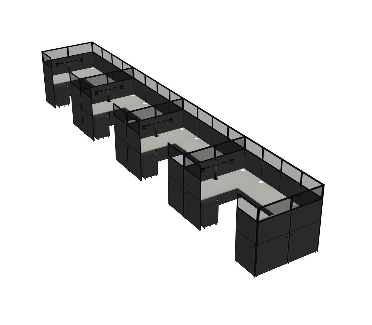 Système De Panneaux En U Grey Shadows Pour 4 Personnes + Bras D'écran (bras Doubles) + Tiroirs Mobiles En Métal Pour 4 Utilisateur(s)