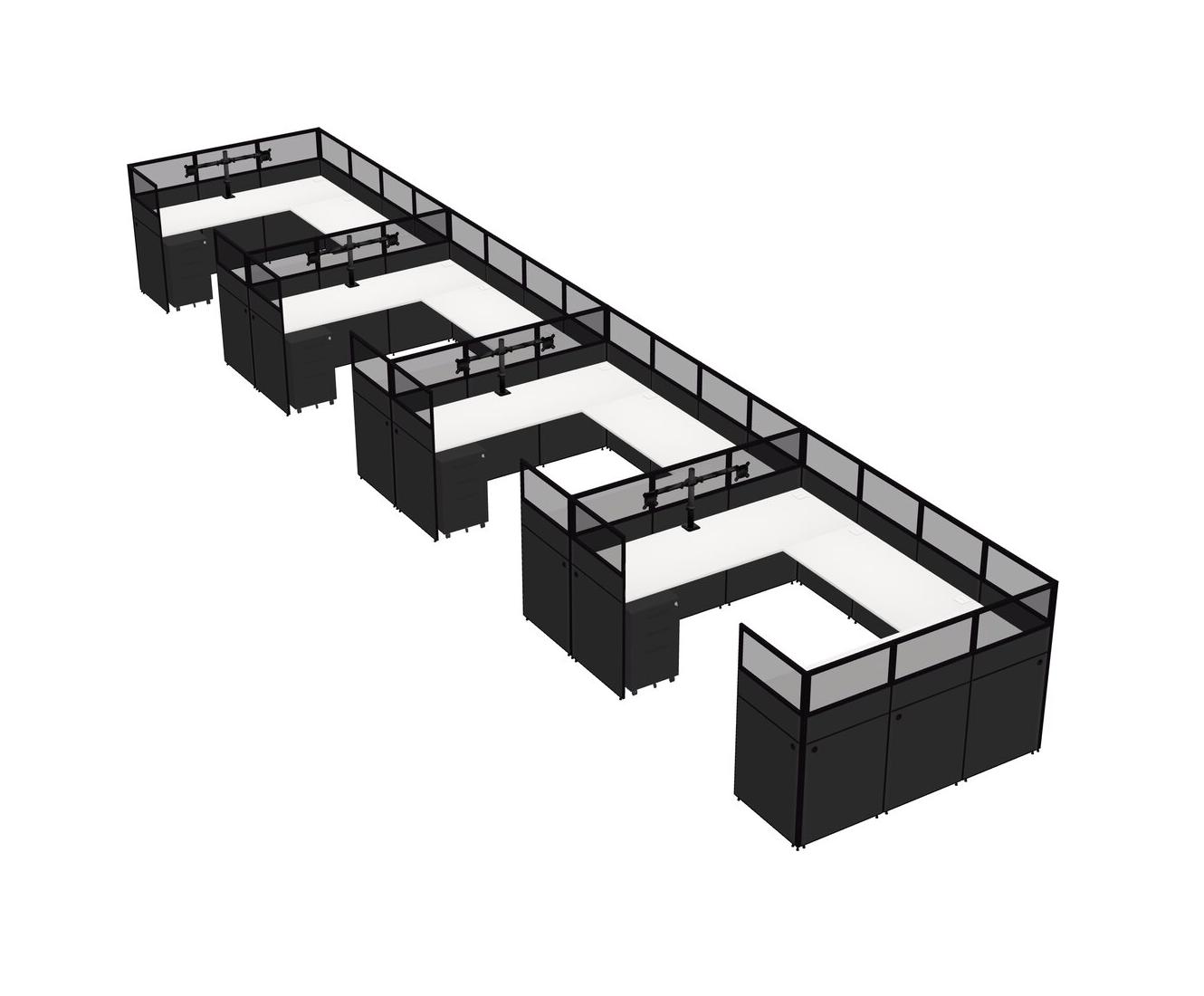 Système De Panneaux Blancs En U Pour 4 Personnes + Bras D'écran (bras Doubles) + Tiroirs Mobiles En Métal Pour 4 Utilisateur(s)