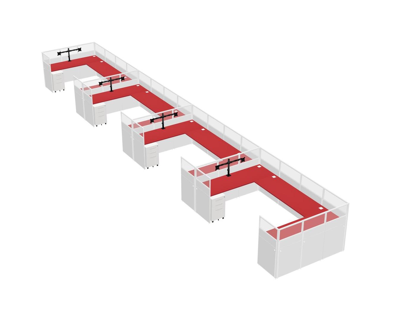 Système De Panneaux En U Prism Red Pour 4 Personnes + Bras D'écran (bras Doubles) + Tiroirs Mobiles En Métal Pour 4 Utilisateur(s)