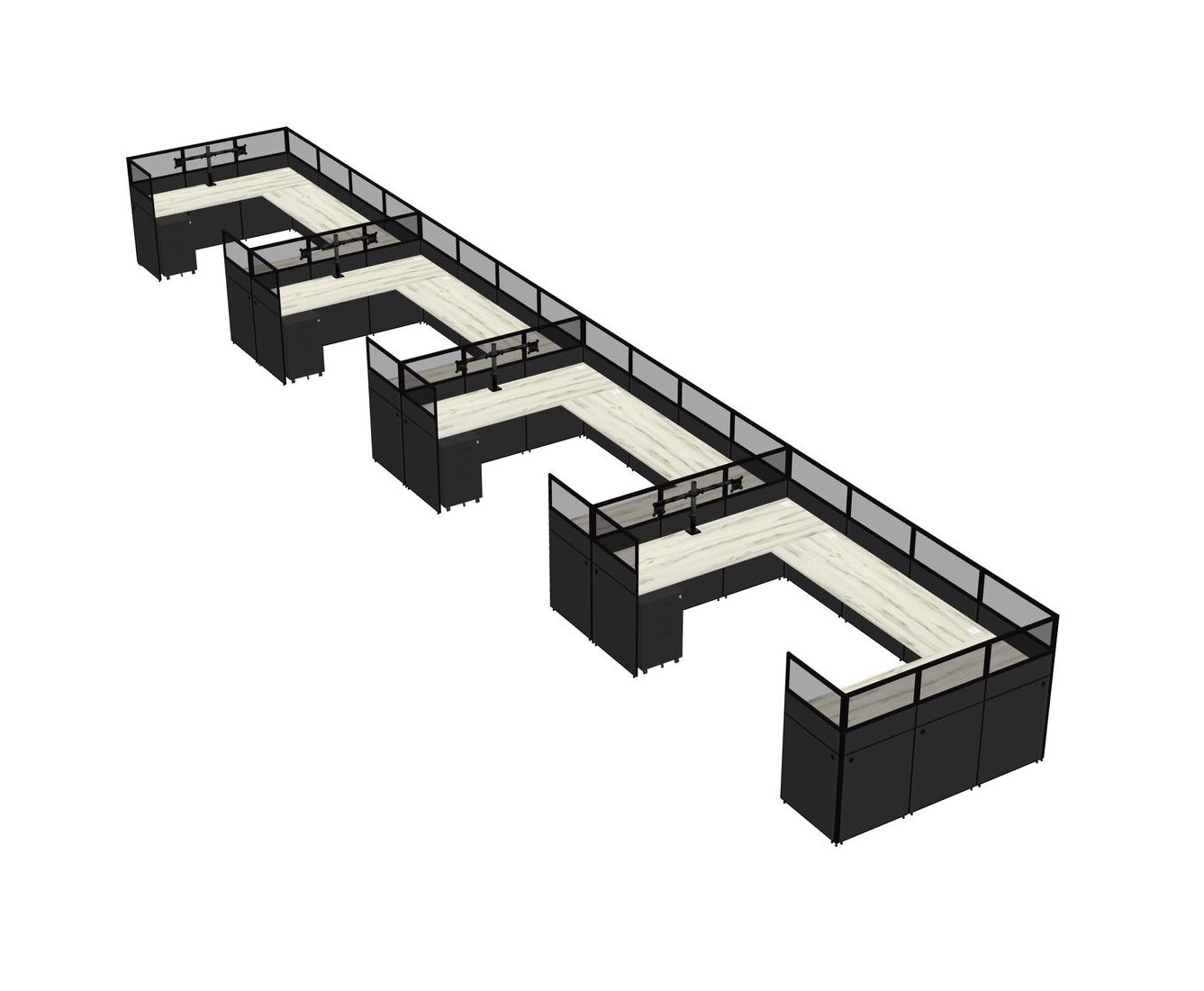 Système De Panneaux En U Heinne Holz Pour 4 Personnes + Bras D'écran (bras Doubles) + Tiroirs Mobiles En Métal Pour 4 Utilisateur(s)