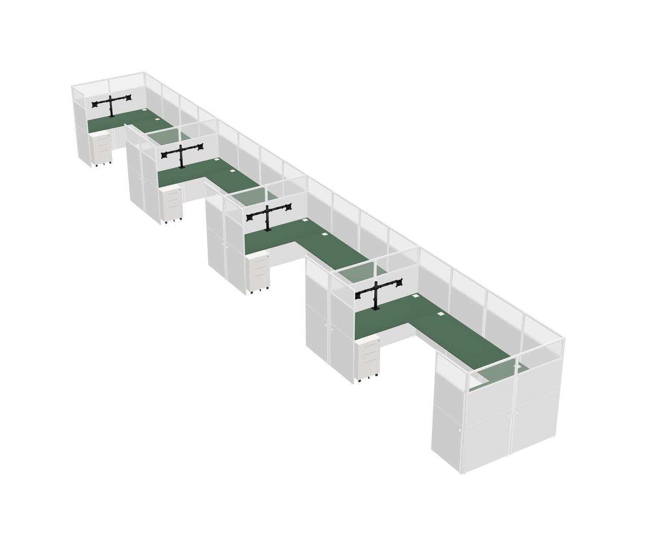 Système De Panneaux En U Vert Pour 4 Personnes + Bras De Moniteur (bras Doubles) + Tiroirs Mobiles En Métal Pour 4 Utilisateur(s)