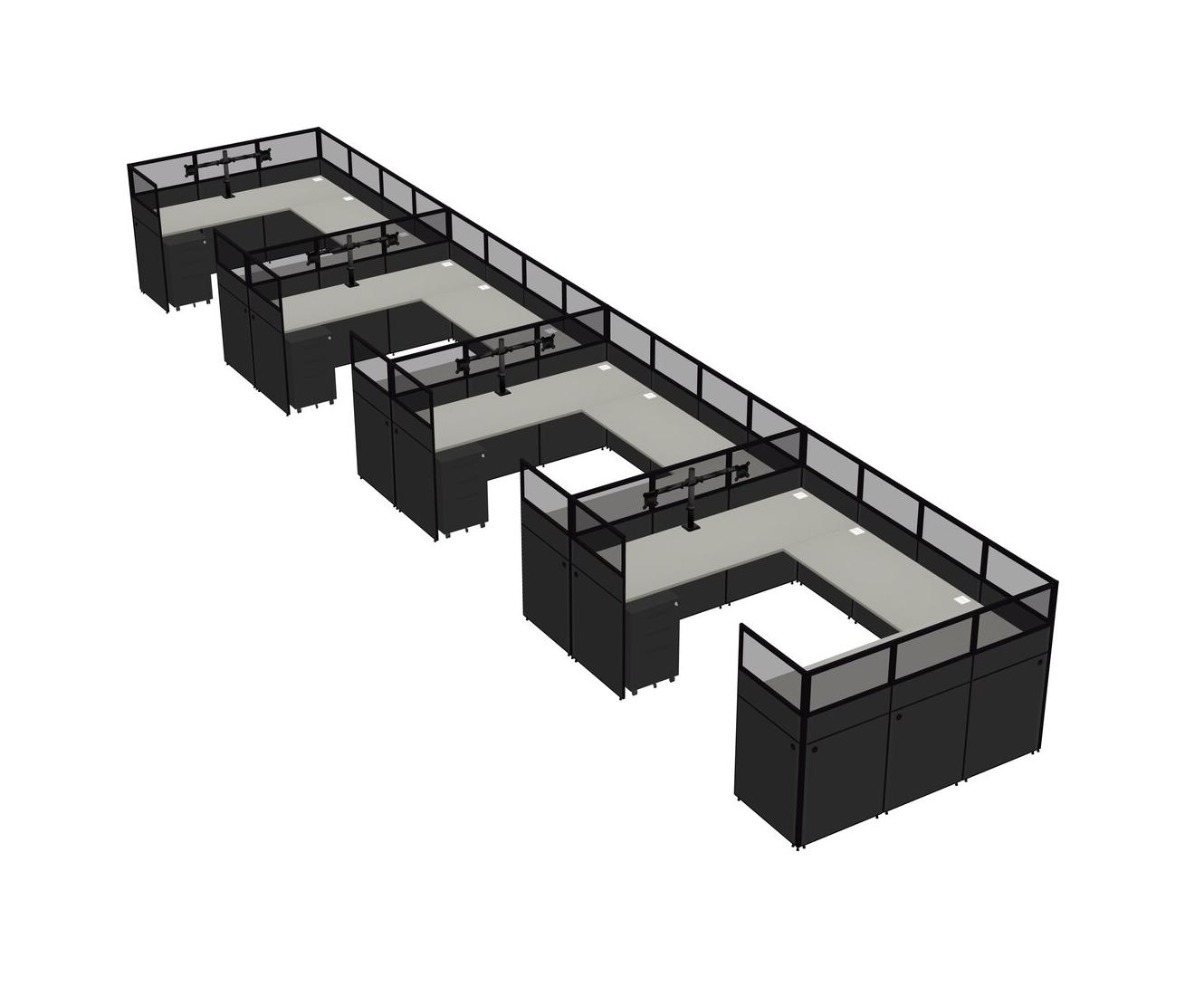 Système De Panneaux En U Grey Shadows Pour 4 Personnes + Bras D'écran (bras Doubles) + Tiroirs Mobiles En Métal Pour 4 Utilisateur(s)