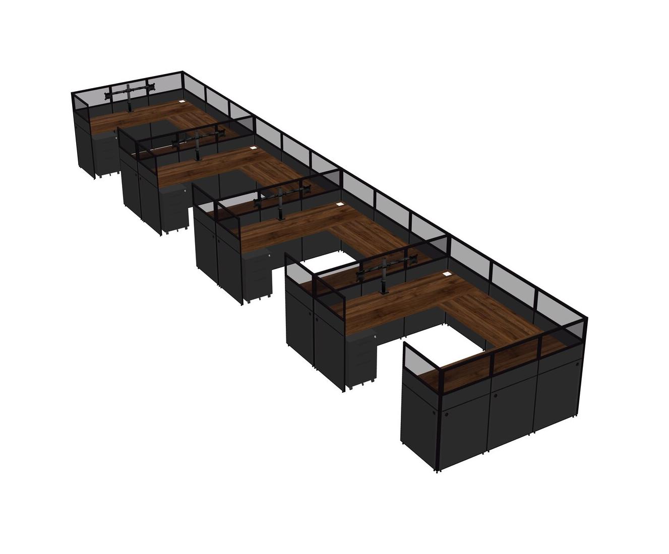 Système De Panneaux En U En Noyer Columbia Pour 4 Personnes + Bras D'écran (bras Doubles) + Tiroirs Mobiles En Métal Pour 4 Utilisateur(s)