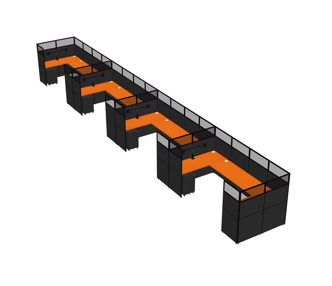 Système De Panneaux En U Orange Pour 4 Personnes + Bras De Moniteur (bras Doubles) + Tiroirs Mobiles En Métal Pour 4 Utilisateur(s)