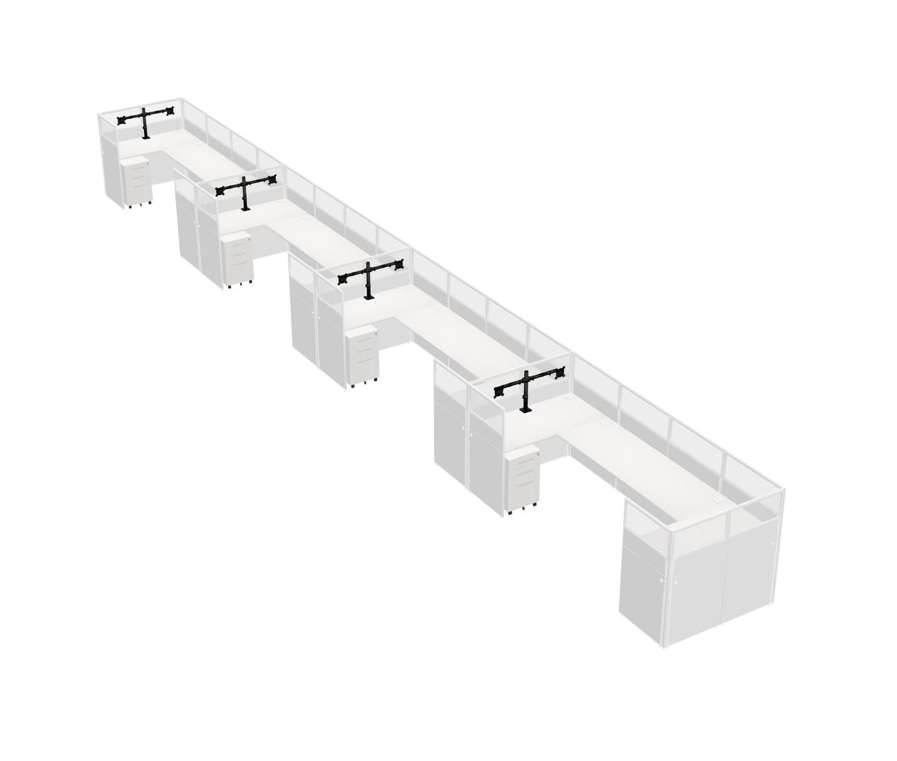 Système De Panneaux Blancs En U Pour 4 Personnes + Bras D'écran (bras Doubles) + Tiroirs Mobiles En Métal Pour 4 Utilisateur(s)