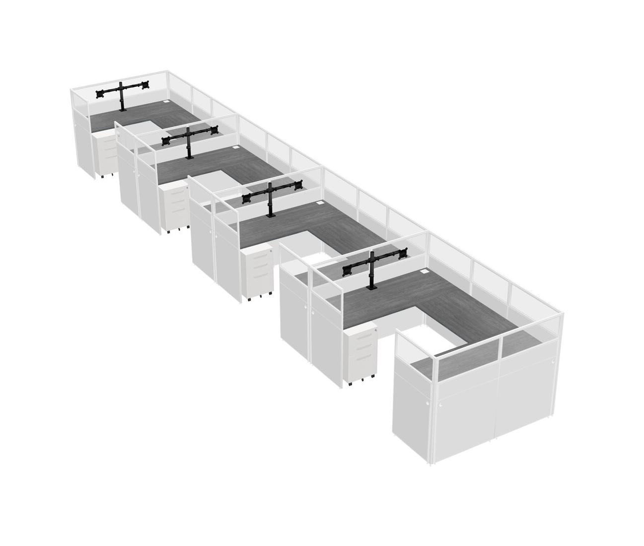 Système De Panneaux En U Gris Pour 4 Personnes + Bras D'écran (bras Doubles) + Tiroirs Mobiles En Métal Pour 4 Utilisateur(s)