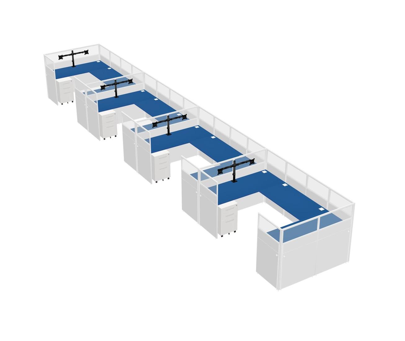 Système De Panneaux En U Prism Blue Pour 4 Personnes + Bras D'écran (bras Doubles) + Tiroirs Mobiles En Métal Pour 4 Utilisateur(s)