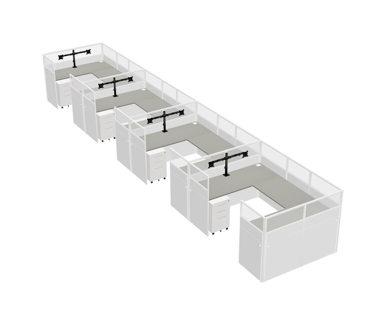 Système De Panneaux En U Grey Shadows Pour 4 Personnes + Bras D'écran (bras Doubles) + Tiroirs Mobiles En Métal Pour 4 Utilisateur(s)